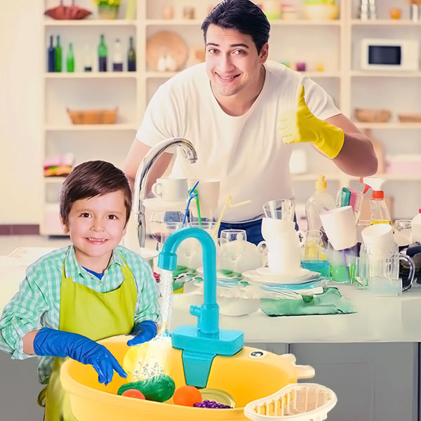 Dzięki tej zabawnej i funkcjonalnej umywalce dzieci mogą wykonywać codzienne czynności, takie jak mycie naczyń, warzyw, a nawet zabawek, pomagając im budować pewność siebie i uczyć się odpowiedzialności. To idealny sposób na wczesne zachęcanie do samodzielności!